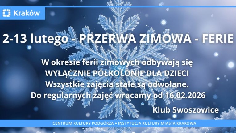 PRZERWA ZIMOWA - FERIE - 02-13.02.2026